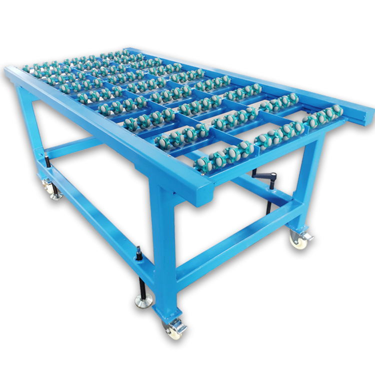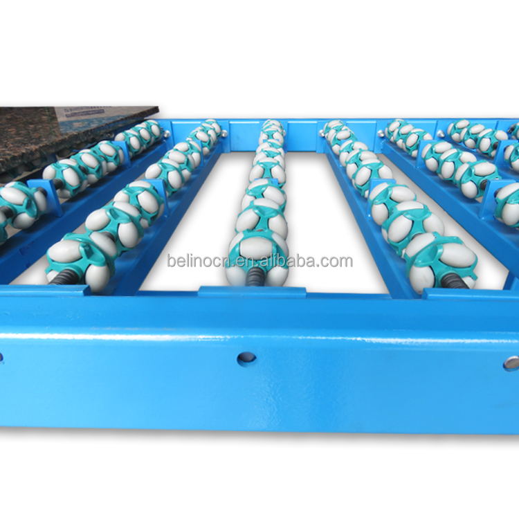 臺面是由多個小萬向輪組成的輸送帶,轉動方向靈活,是石材加工過程中物料傳送的理想工具。